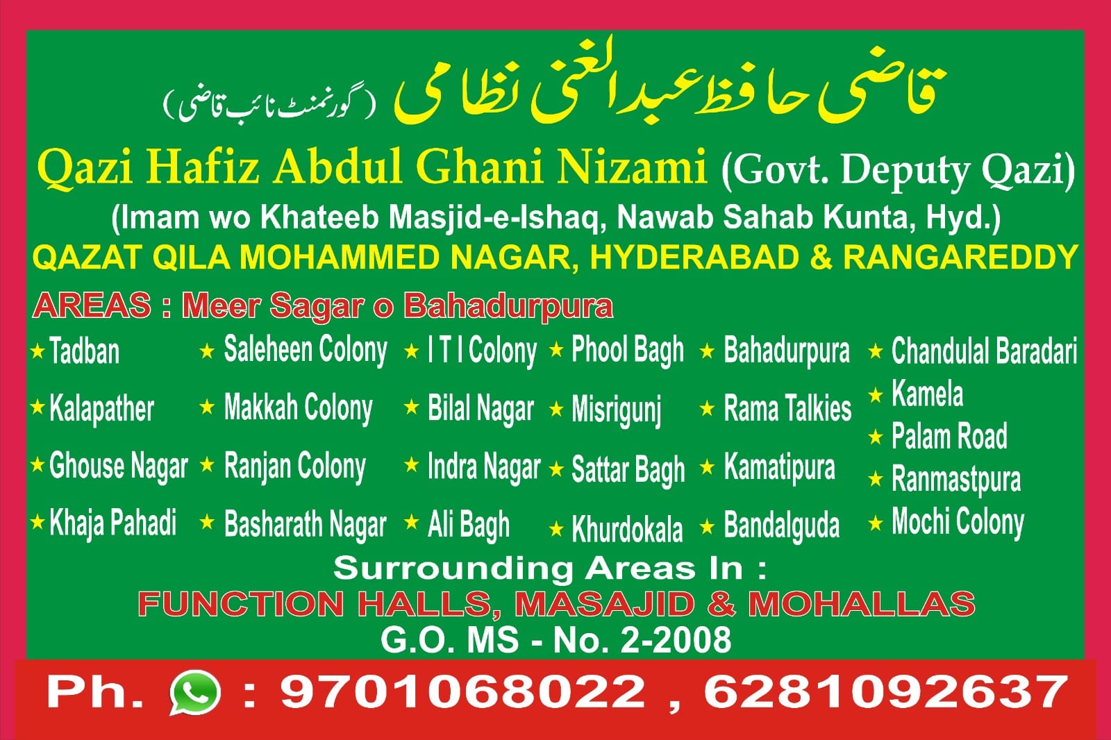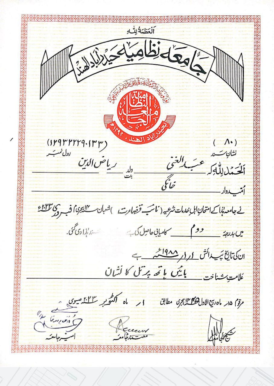 Govt Deputy Qazi Hafiz Abdul Ghani in Bahadurpura, Mehdipatnam, Kishan Bagh, Jahanuma, Charminar, Shamshabad, Hyderabad, Ranga Reddy, Bandlaguda, Golconda | Qazi in Bahadurpura, Mehdipatnam, Kishan Bagh, Jahanuma, Charminar, Shamshabad, Hyderabad, Ranga Reddy, Bandlaguda, Golconda | Marriage Certificate Agents in Bahadurpura, Mehdipatnam, Kishan Bagh, Jahanuma, Charminar, Shamshabad, Hyderabad, Ranga Reddy, Bandlaguda, Golconda | Marriage Certificate correction in Bahadurpura, Mehdipatnam, Kishan Bagh, Jahanuma, Charminar, Shamshabad, Hyderabad, Ranga Reddy, Bandlaguda, Golconda | Marriage Registrar Consultants in Bahadurpura, Mehdipatnam, Kishan Bagh, Jahanuma, Charminar, Shamshabad, Hyderabad, Ranga Reddy, Bandlaguda, Golconda | Marriage Certificate In 24 Hours in Bahadurpura, Mehdipatnam, Kishan Bagh, Jahanuma, Charminar, Shamshabad, Hyderabad, Ranga Reddy, Bandlaguda, Golconda | Muslim Marriage Registrar Consultant in Bahadurpura, Mehdipatnam, Kishan Bagh, Jahanuma, Charminar, Shamshabad, Hyderabad, Ranga Reddy, Bandlaguda, Golconda | Certificate Translation Services in Bahadurpura, Mehdipatnam, Kishan Bagh, Jahanuma, Charminar, Shamshabad, Hyderabad, Ranga Reddy, Bandlaguda, Golconda | Love Marriage Registrar in Bahadurpura, Mehdipatnam, Kishan Bagh, Jahanuma, Charminar, Shamshabad, Hyderabad, Ranga Reddy, Bandlaguda, Golconda | Arrange Marriage Registrar in Bahadurpura, Mehdipatnam, Kishan Bagh, Jahanuma, Charminar, Shamshabad, Hyderabad, Ranga Reddy, Bandlaguda, Golconda | Mutual Khula in Bahadurpura, Mehdipatnam, Kishan Bagh, Jahanuma, Charminar, Shamshabad, Hyderabad, Ranga Reddy, Bandlaguda, Golconda | Khula certificate in Bahadurpura, Mehdipatnam, Kishan Bagh, Jahanuma, Charminar, Shamshabad, Hyderabad, Ranga Reddy, Bandlaguda, Golconda | Certificate attestation in Bahadurpura, Mehdipatnam, Kishan Bagh, Jahanuma, Charminar, Shamshabad, Hyderabad, Ranga Reddy, Bandlaguda, Golconda | Certificate notary in Bahadurpura, Mehdipatnam, Kishan Bagh, Jahanuma, Charminar, Shamshabad, Hyderabad, Ranga Reddy, Bandlaguda, Golconda |